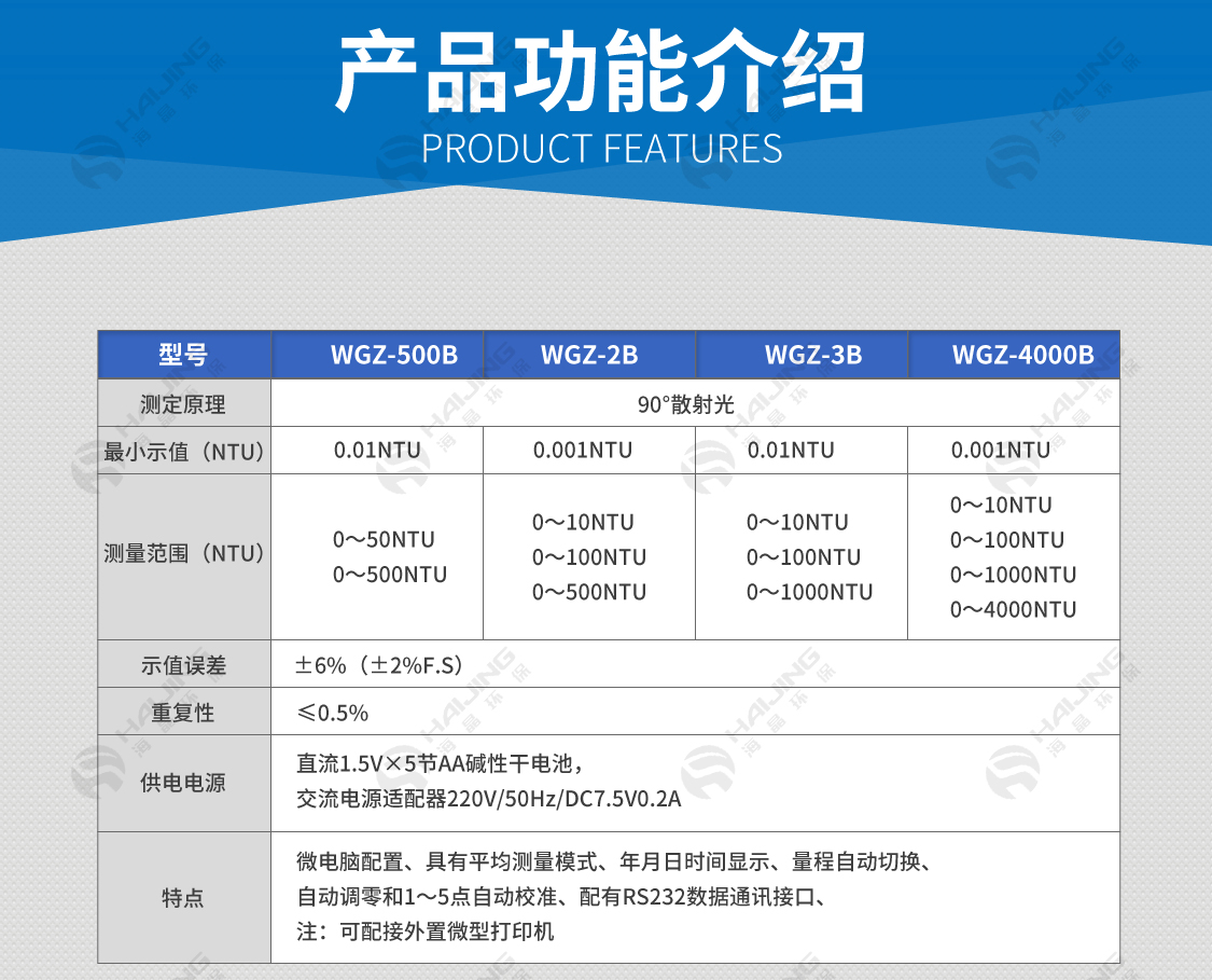| 最小示值(NTU) | 0.01NTU | 0.001NTU | 0.01NTU | 0.001NTU |
