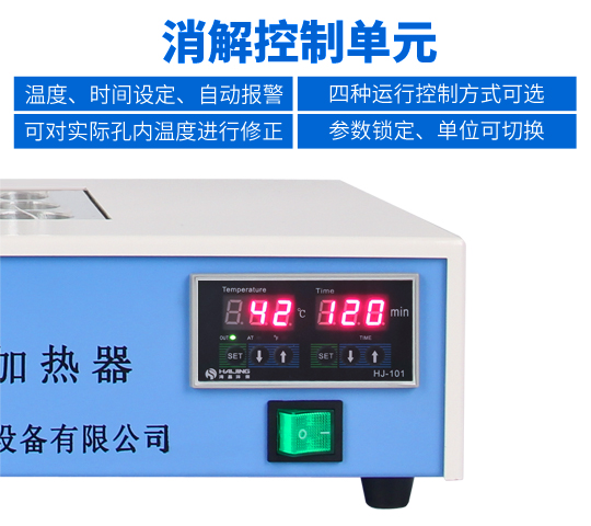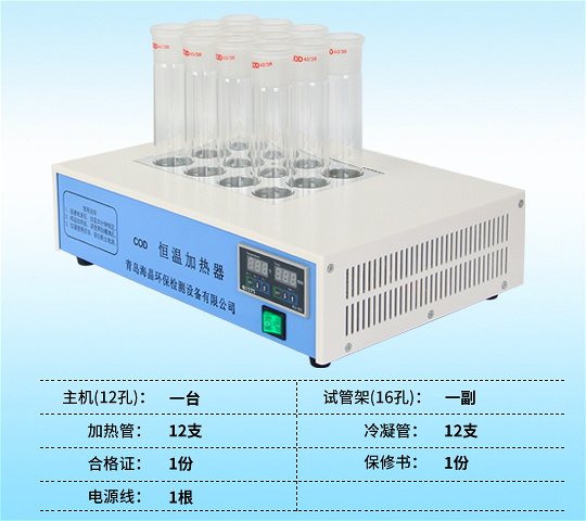 該儀器是分析污水中COD(化學(xué)耗氧量)的一種前期預(yù)處理的加熱回流裝置;采用鋁塊加熱的方式為樣品進(jìn)行消解工作;由加熱模塊和溫控模塊兩部分構(gòu)成,根據(jù)實(shí)驗(yàn)方法將樣品升溫至165-170℃,并保持恒溫2個(gè)小時(shí)后完成COD消解步驟。