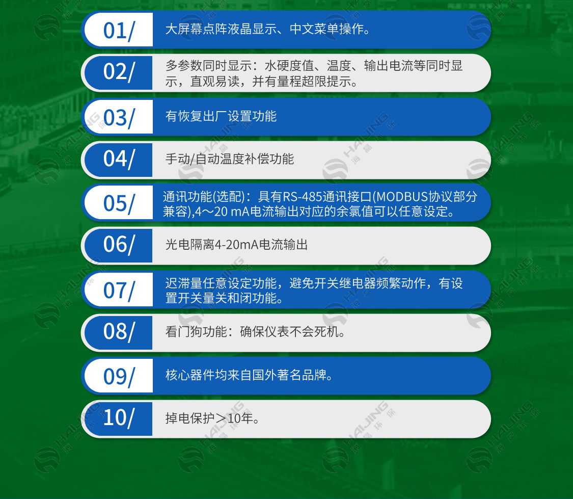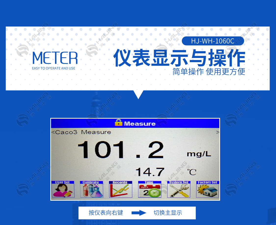 2、多參數(shù)同時顯示:水硬度值、溫度、輸出電流等同時顯示,直觀易讀,并有量程超限提示。