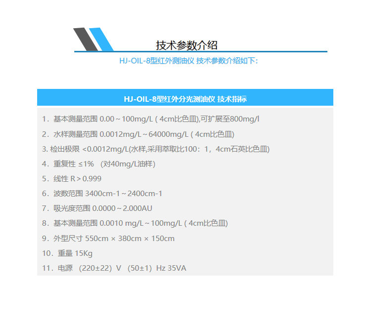 8.基本測量范圍 0.0012 mg/L~100mg/L ( 4cm比色皿)