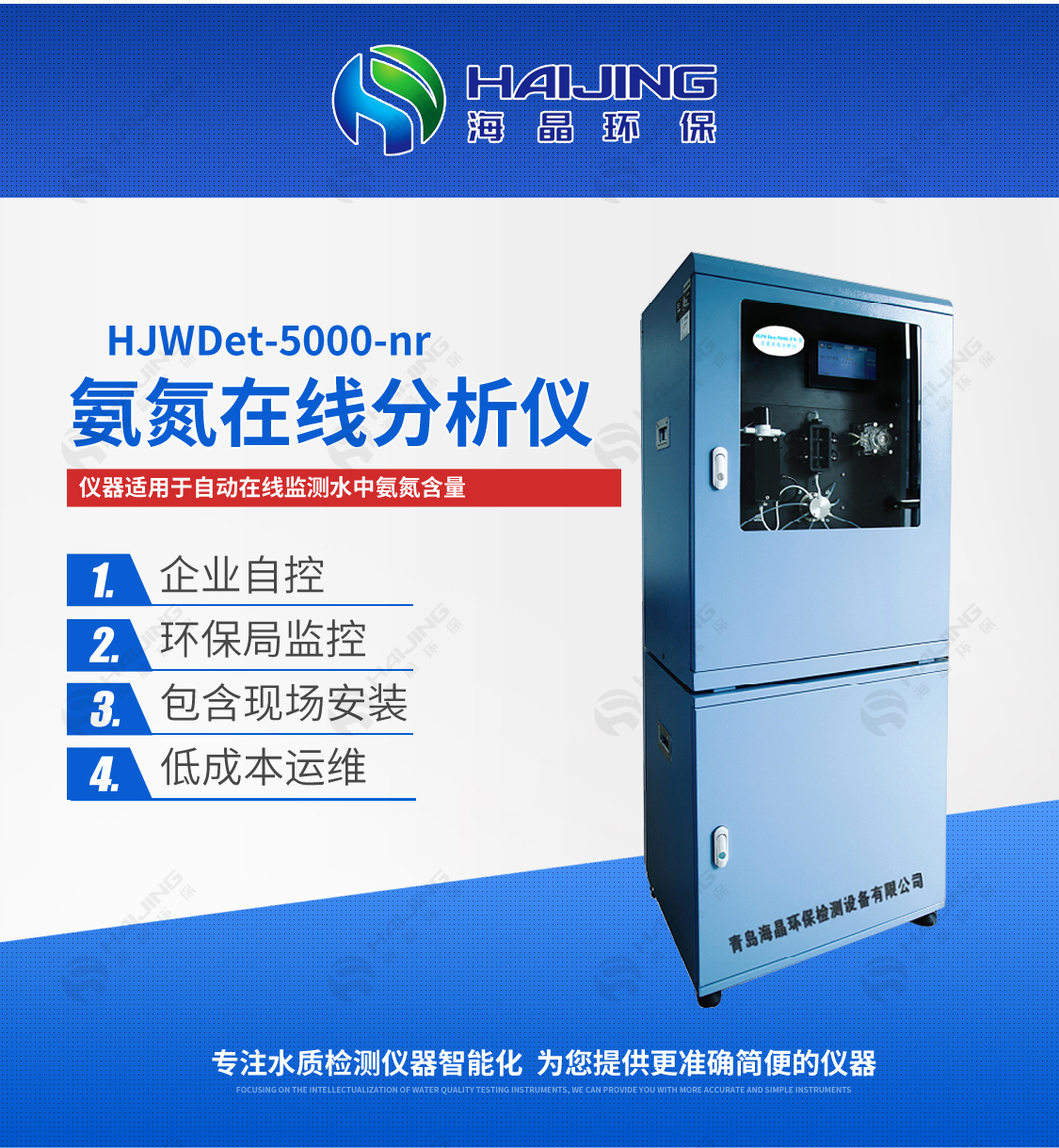 HJCODet-5000型COD在線監測儀的優勢 :海晶環保HJCODet-5000型COD在線分析儀是一種用于實時監測水體中化學需氧量(COD)的高精度儀器,廣泛應用于環境保護、水質監測和廢水處理等領域。相比傳統的實驗室檢測方法,海晶環保HJCODet-5000型COD在線分析儀具有顯著的優勢,主要體現在以下幾個方面:1. 實時監......